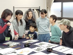 今回は墨流し、板締め、アート手ぬぐい(希望者のみ)を夏のレッスンとして行いました。「今度はいつやるの?」と、さっそく質問が出ていますが、通常の習字にも一生懸命取り組んでもらい、また来年の夏休みに思い切りアートを楽しんでもらいたいと思います♪