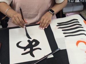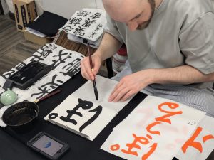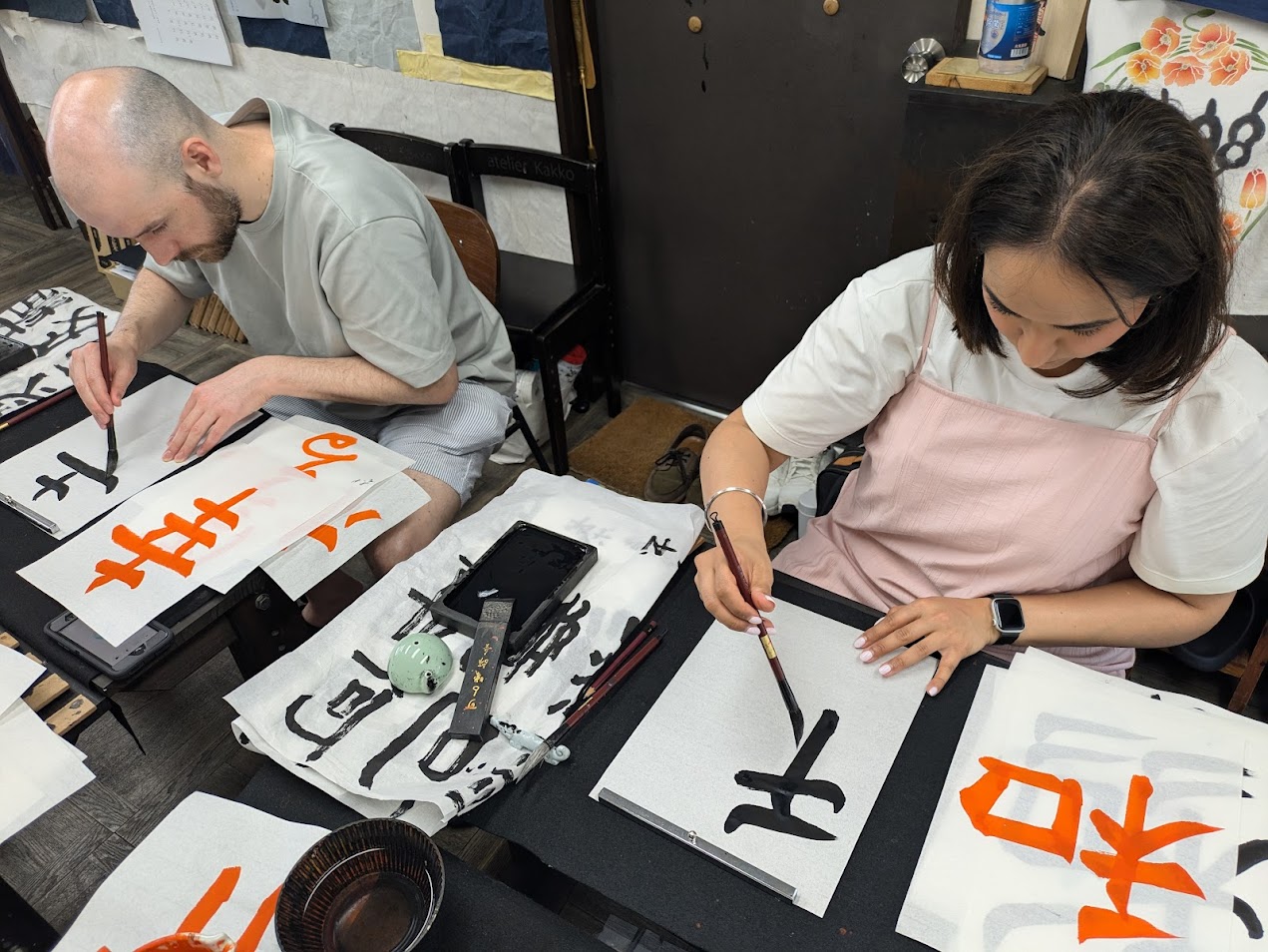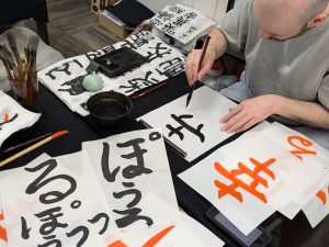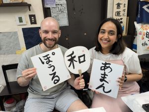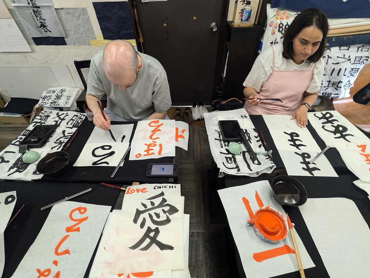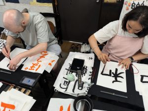 大阪から入り、東京に到着してすぐの日程で書道体験です。