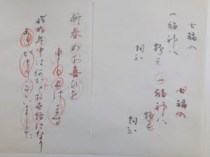 今回は新年の準備として、年賀状の挨拶文を主に練習です。
