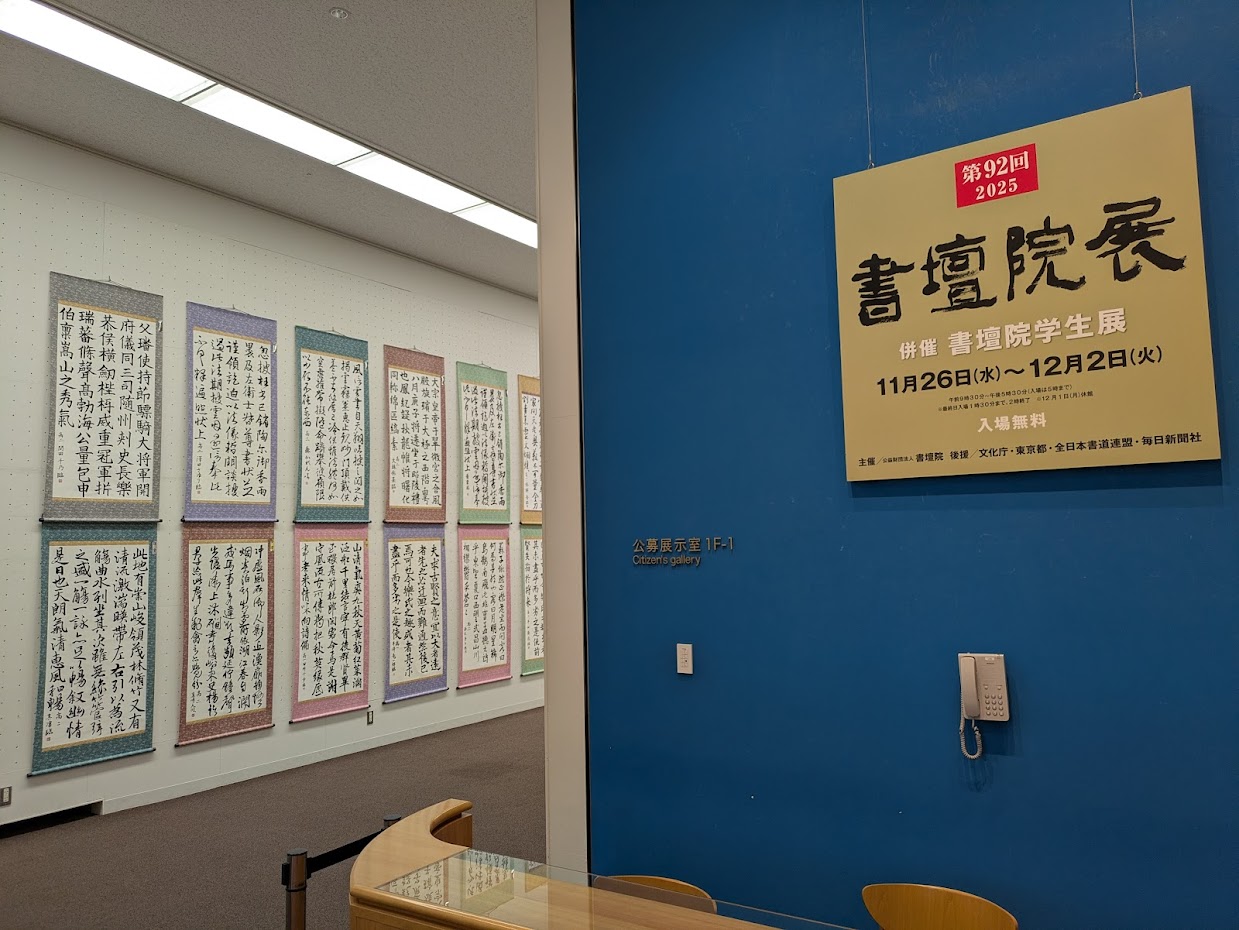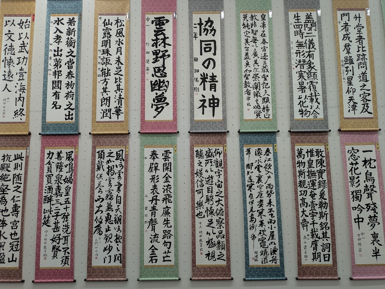 書壇院開催中! 2025/11/29 水曜日から始まっている書壇院展! 55名の子ども、学生クラスの生徒たちと、 一般教室生の皆さん7名が参加しています。 子どもたちのパワーあふれる作品、 中高生の大人顔負けの作品と、 今年は昨年以上にたくさんの人が参加しているのか、 学生部の会場からとりわけ力強さを感じました^^ まだ学生展の一部しか見られていないので、 自分も含めて一般部の作品は明日以降に時間を見つけてみたいと思います^^