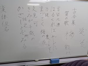 今回は先生が新年にふさわしい古今集の歌を手本に持ってきてくれたので、私も年末少し練習して新年までに仕上げたいと思います。