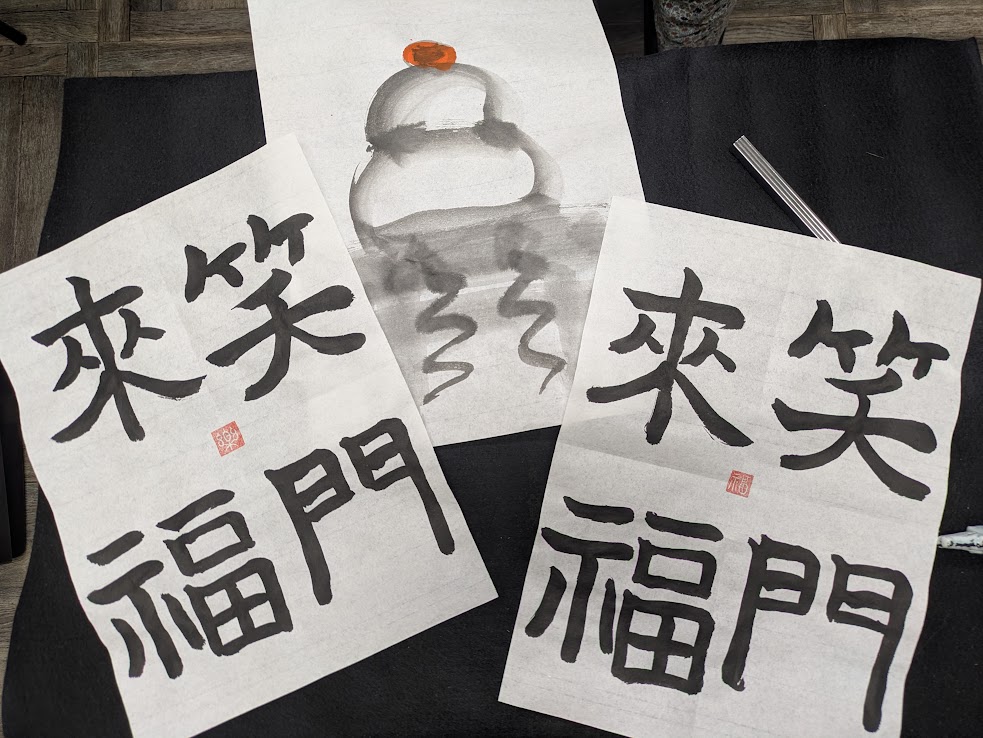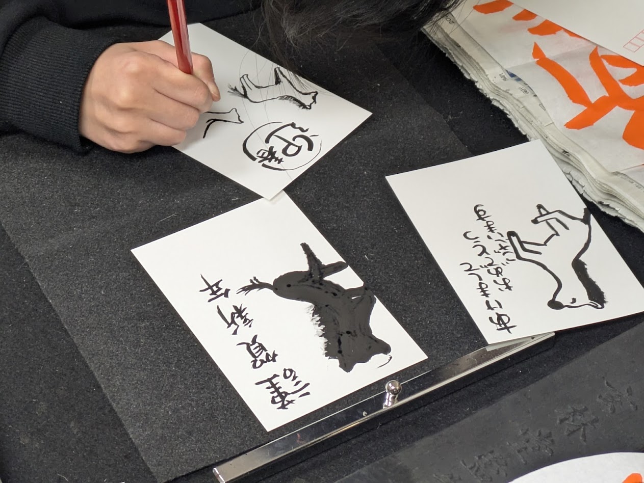 すっかり筆で絵を書くことにも慣れ、年賀状はがきの見せ方もわかっています✨
