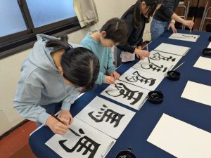 中学生の有志が書道体験コーナーのサポートをしてくれる頼りになる存在になりました。