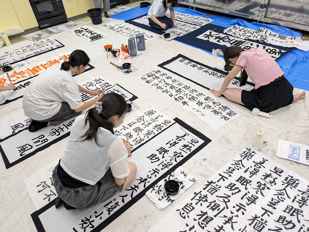中学生の有志が書道体験コーナーのサポートをしてくれる頼りになる存在になりました。