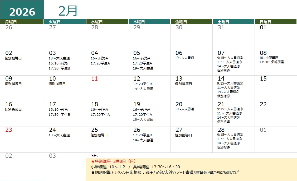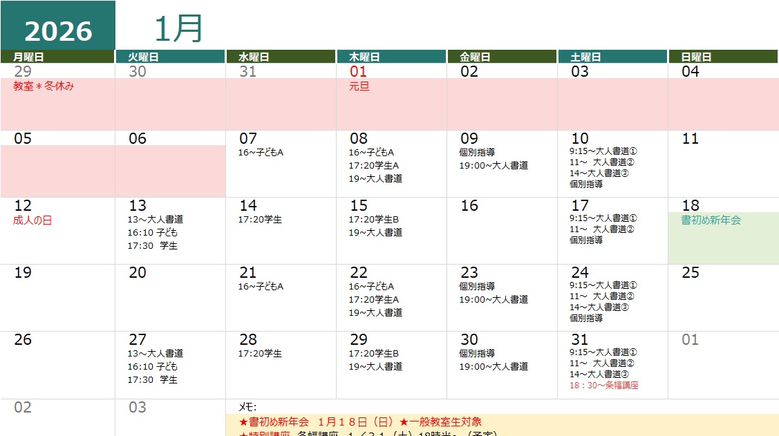 2026年🐎教室スケジュール更新 2026/01/09 ことしは「うまくいく」一年でありますように! 昨年は子どもたちだけでなく、大人の方たちの展覧会出品も増え始めました。 皆さんが新たな挑戦に参加していく姿を見られ嬉しく頼もしく感じました。 今年は昨年以上に多くの生徒さんの展覧会への挑戦が期待できると思っています。 「うまくいく」年になりますよう! 皆さんとともに前進していきたいと思います^^/ 小筆講座 2月8日、3月8日 条幅講座 1月31日、2月8日、3月14日