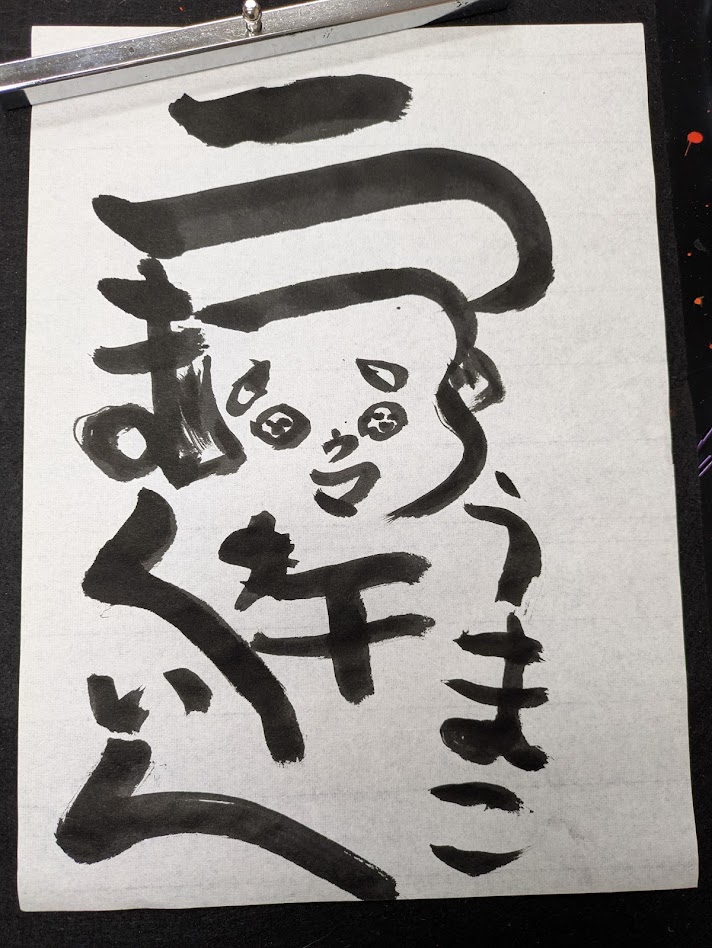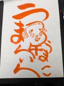 うまくいくすけ君の妹うまくいこちゃんを発見するとさっそく上手にさらさらと書いていました^^