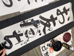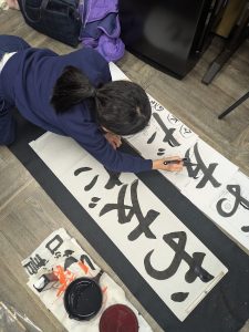 席書会直前練習 2026/01/26 冬休みに書初め練習に来ていたRちゃん 本番の席書会は次の火曜日。 土曜日は直前練習に来ました。 熱心に直すべきところをチェックして、アドバイスを筆でメモしていました^^ この調子でいけば金賞取れるのではと期待していますが、「上手な子がほかにもいる」と本人は自信なさげ…… でも苦手な右払い特訓もして、形もだいぶ整ったので余計な心配はせずにいつも通りを心がければ大丈夫! 書道は気持ちもだいぶ影響するので、 とにかく平常心が一番。 アドバイスをしながら私自身も常に心に刻んでいます🌱