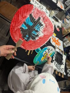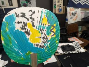 毛筆から入り、うちわ作品を取り組みました^^/