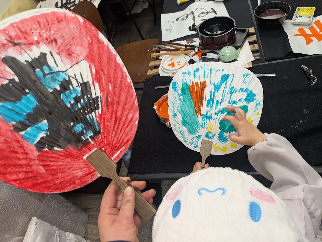 毛筆から入り、うちわ作品を取り組みました^^/