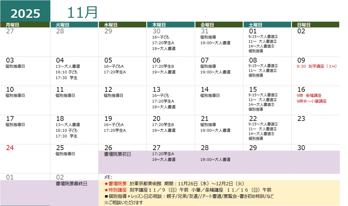■条幅講座(月1回)※展覧会、試験前は月2,3回設定します